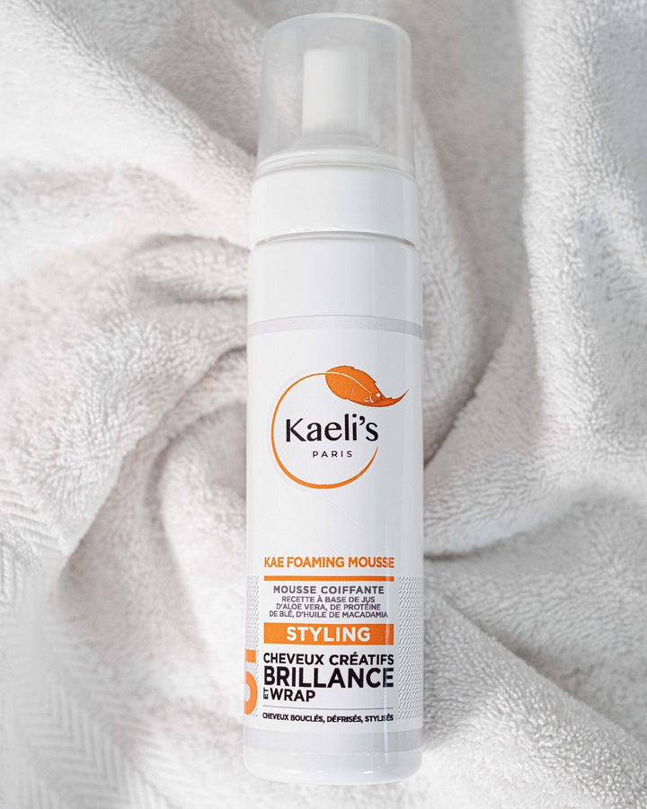 Description du produit : Cette mousse coiffante à base de jus d'aloe vera, de protéines de blé et d'huile de macadamia est spécialement conçue pour donner de l'éclat, du relief et maintenir les derniers modèles de cheveux créatifs. Elle donne un aspect hydraté et magnifique sur l'ensemble de votre chevelure. Pour les cheveux bouclés, lisses, défrisés, stylisés ,colorés ou encore avec des mèches etc.La mousse Kae mousse moussante, est idéale pour vos mises en plis et vos coiffures similaires. Elle est parfaite pour contrôler les frisottis dans les conditions climatiques humides, avec elle le rétrécissement habituel de vos cheveux sera un souvenir lointain. Adaptée aux cheveux secs, elle nourrit les cheveux en profondeur. Non grasse, ni collante, cette mousse convient parfaitement aux petits et grands.