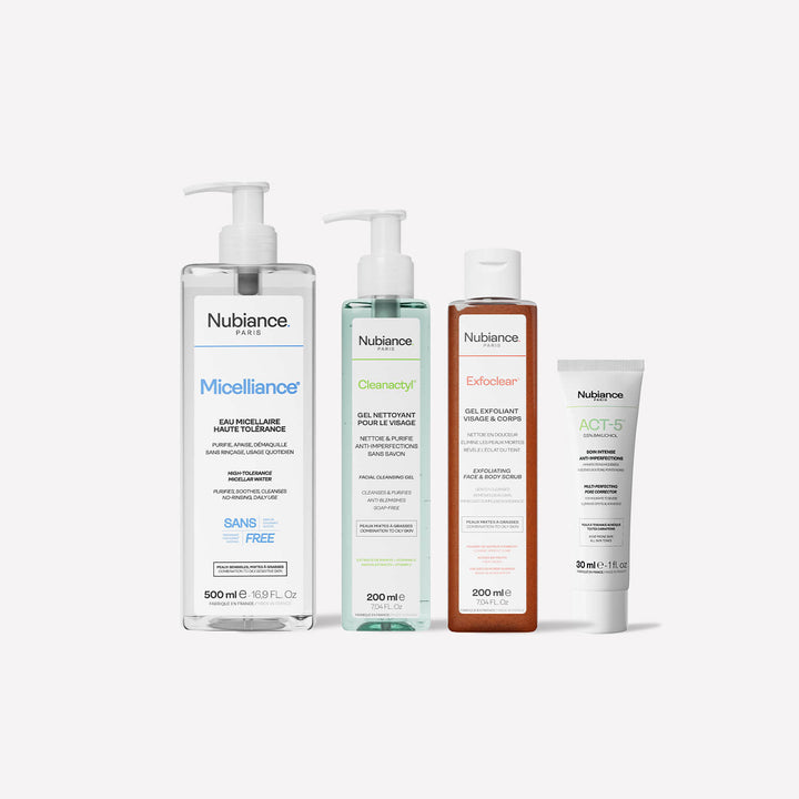 Notre Routine Anti-Imperfections est idéal pour les peaux sensibles à tendance mixte, grasse ou acnéique. Elle se compose de 4 produits essentiels pour démaquiller, nettoyer, exfolier et corriger les imperfections, révélant ainsi un teint net et apaisé.